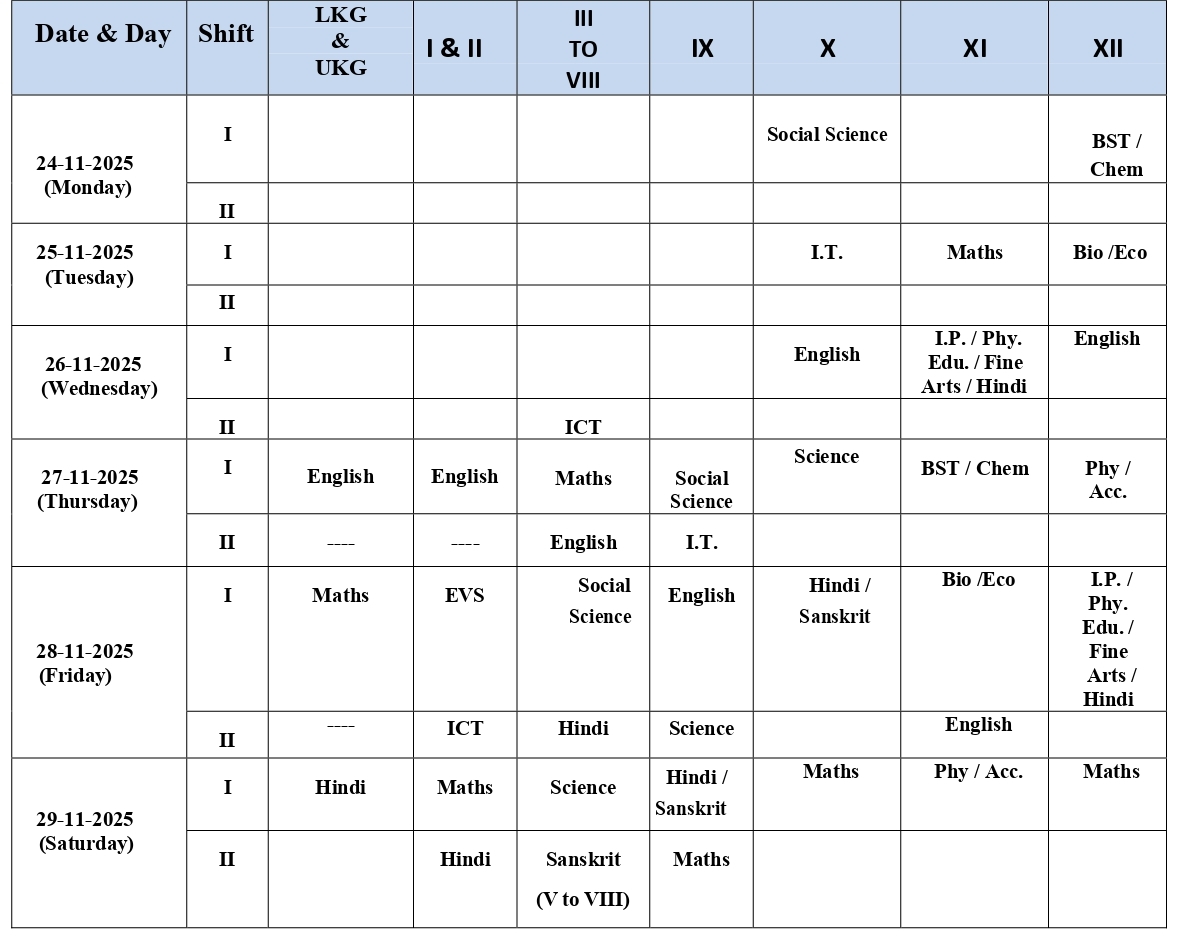 Lunch timing for classes III to XII will be 11:35 a.m. to 11:55 a.m.